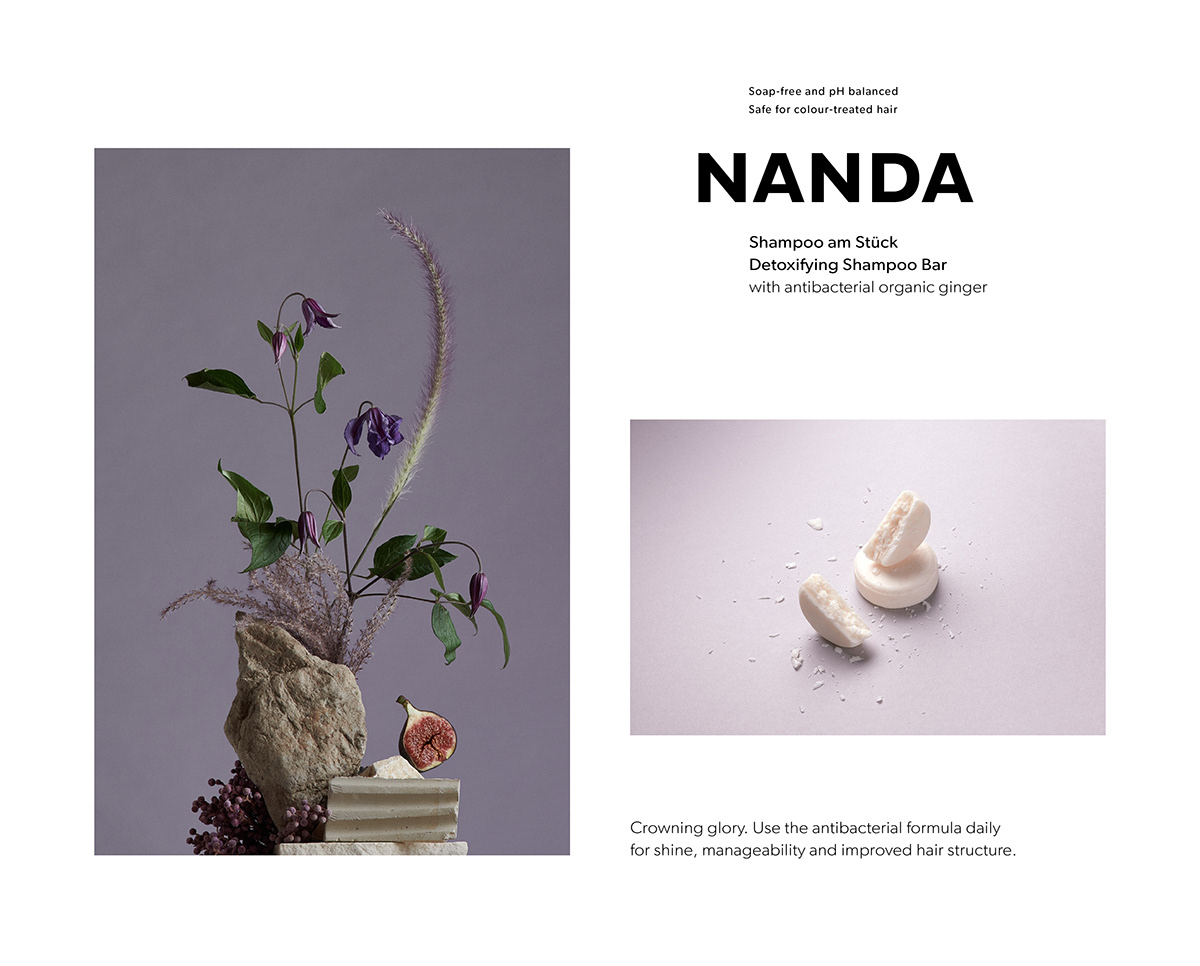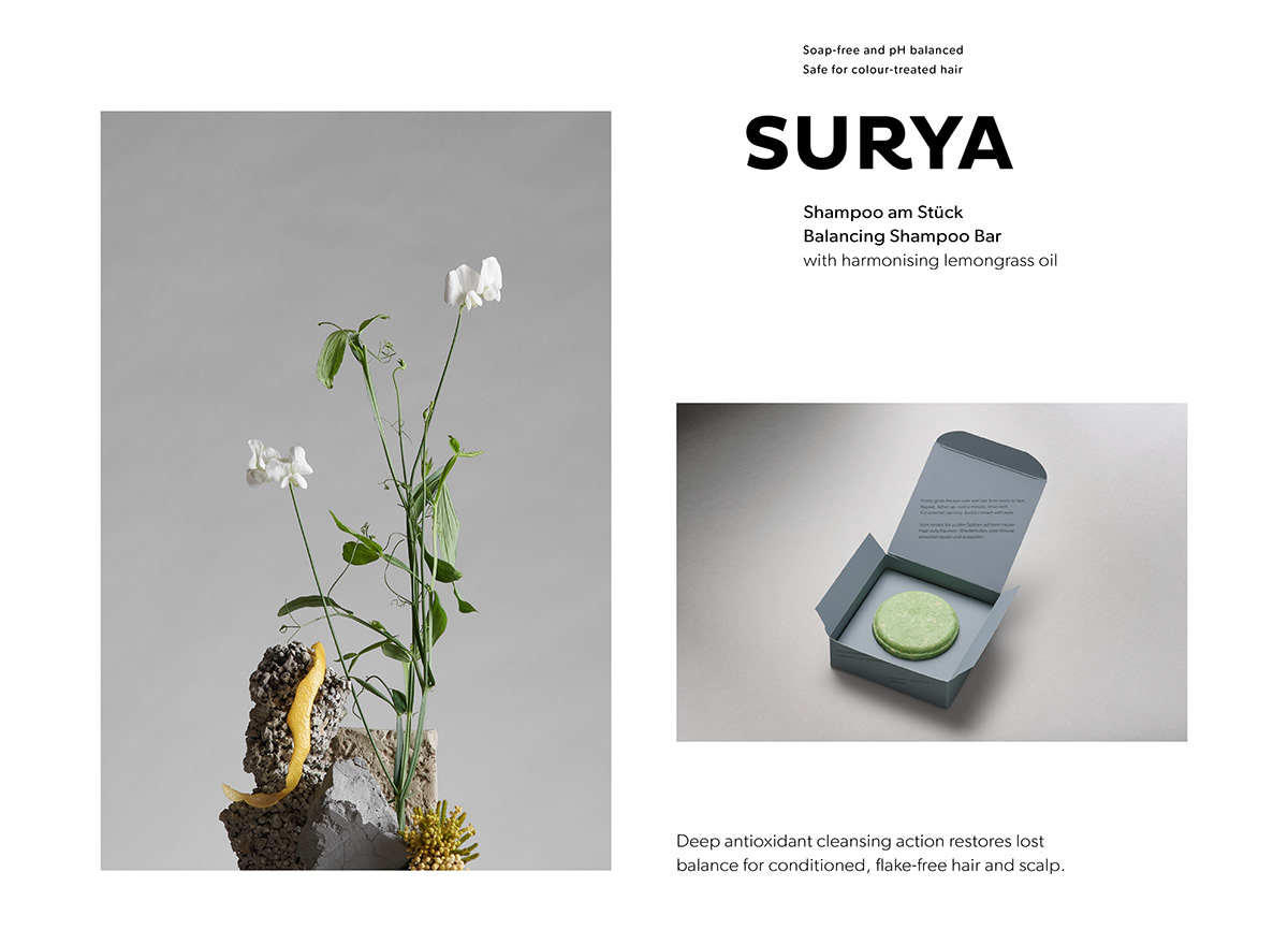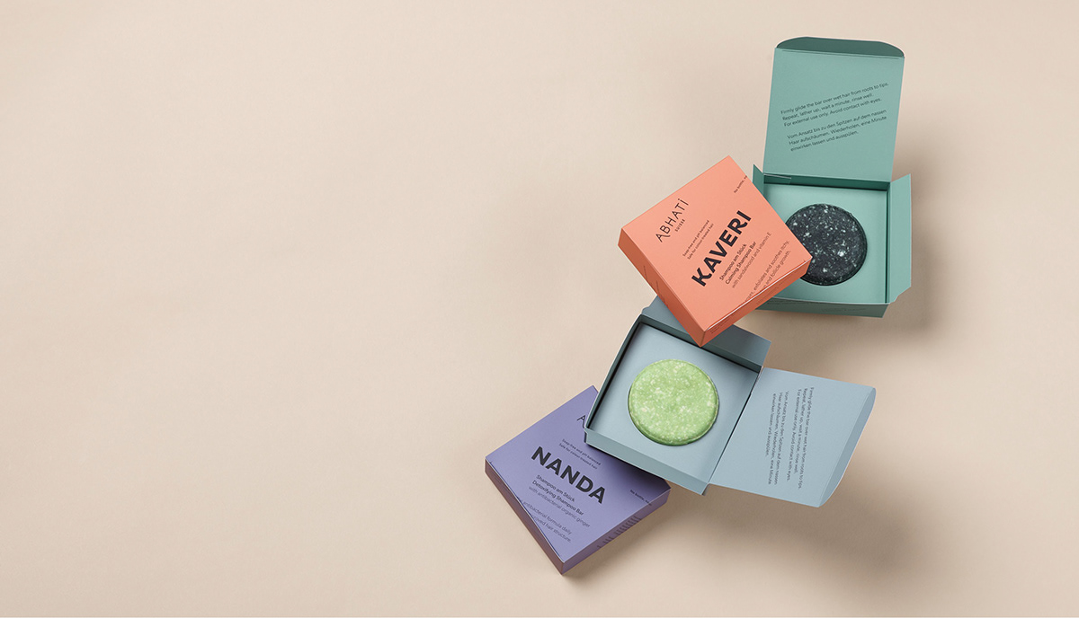 Paperlux Studio designed Abhati Product line. After around 6 years of working for and with Abhati Suisse, it was time to do a little brush-up on the logo, find a solution for the new SOLID collection – featuring solid shampoos as a first product – introduce some colour to the brand, while still staying true to the branding they developed 6 years ago. Also, the designers worked with Anouk Jans and Yannick Müller to create tutorials and some video material and with Lilo Klinkenberg from Studio Lilo on beautiful stills which showcase ingredients from the shampoo bars – and then some.