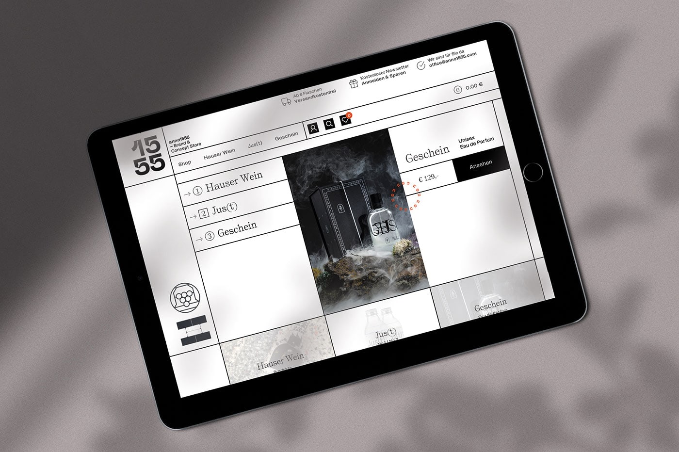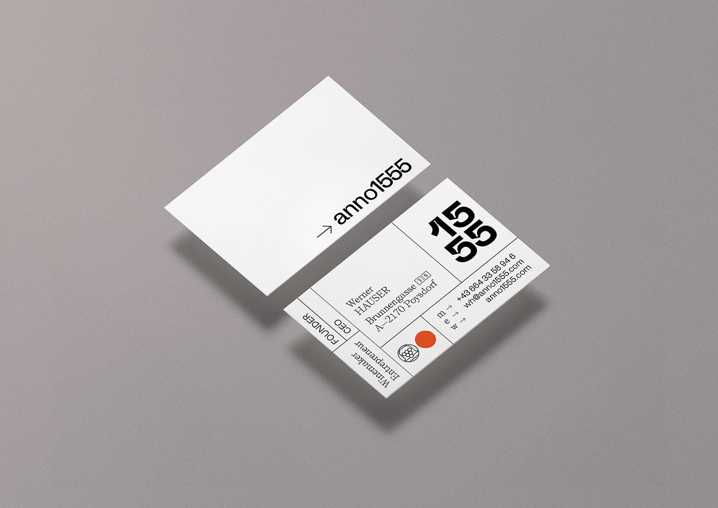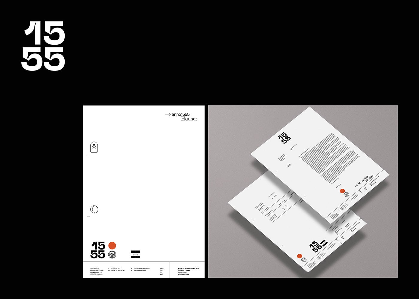 KR8 bureau designed ANNO 1555 - the new lifestyle brand of Austrian winemaker Hauser. The creative craftsman has recently introduced new, contemporary and urban products, all related to the topic of "The grape", such as uplifting Verjus–Sprizz "Jus(t)" or the delicate perfume "GESCHEIN". The brand of ANNO 1555 is a dadaist construct working with a dadaist system. Without a primary logo it introduces endless permeations with the sub brands iconography, two fonts that represent tradition and modernism, and a red dot as a pointer for the present.