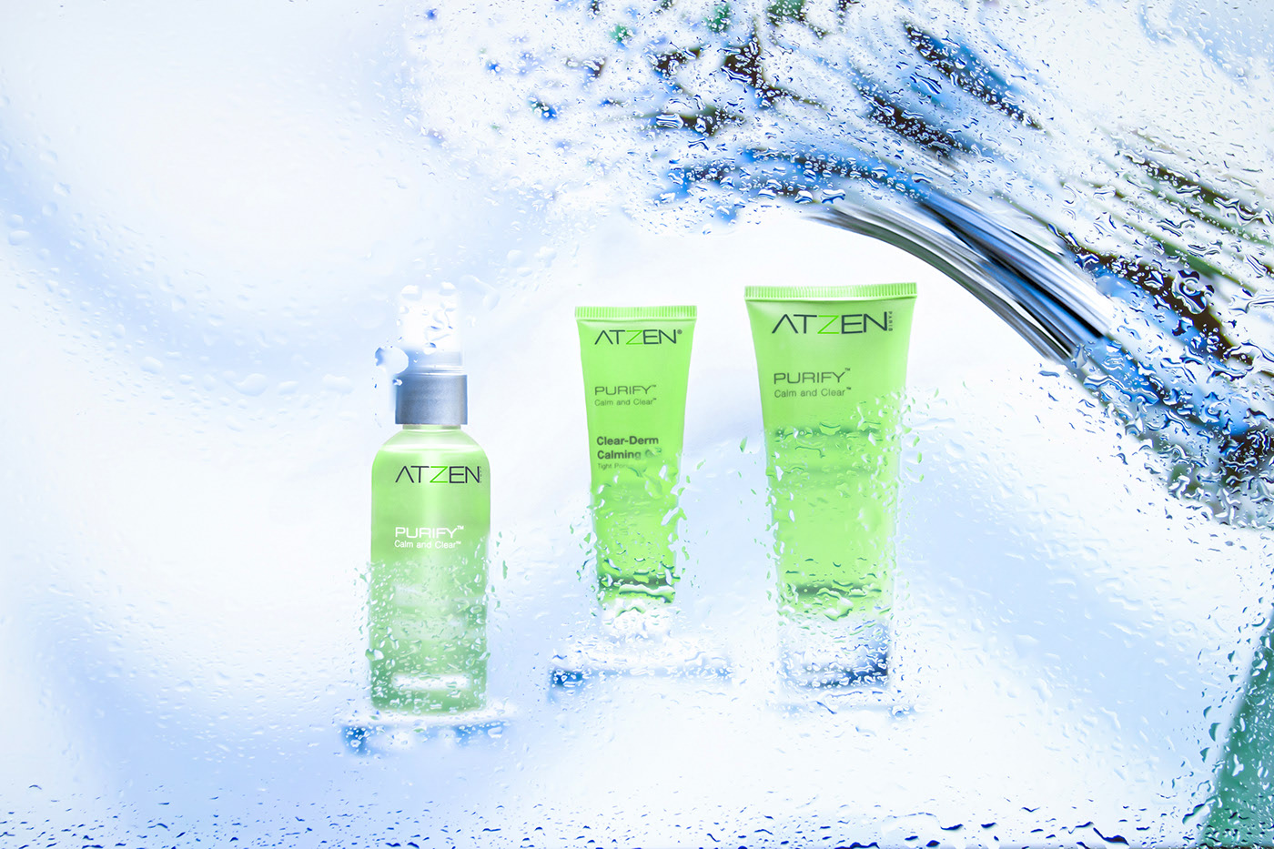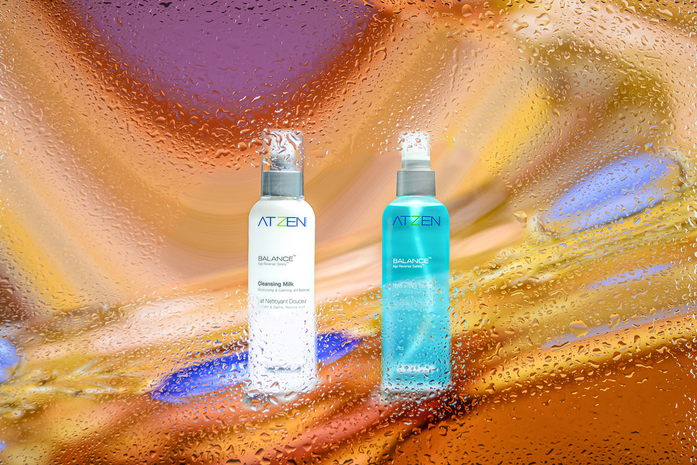 Botanical elements represent organic base of ATZEN®️ products. Modified with the help of editing tools they are turning into depiction of special combination of high-tech laboratory work and power of nature. Shimmering water drops give this series freshness and feeling of renewal but also create some sort of aqueous barrier – it refers to waterproof abilities of the products. Weaving floral curls taking bizarre unique shapes – just the way ATZEN®️ upgrades gifts of nature. To add water they put piece of glass over the screen and tried experimenting with lightning and different sizes of droplets.