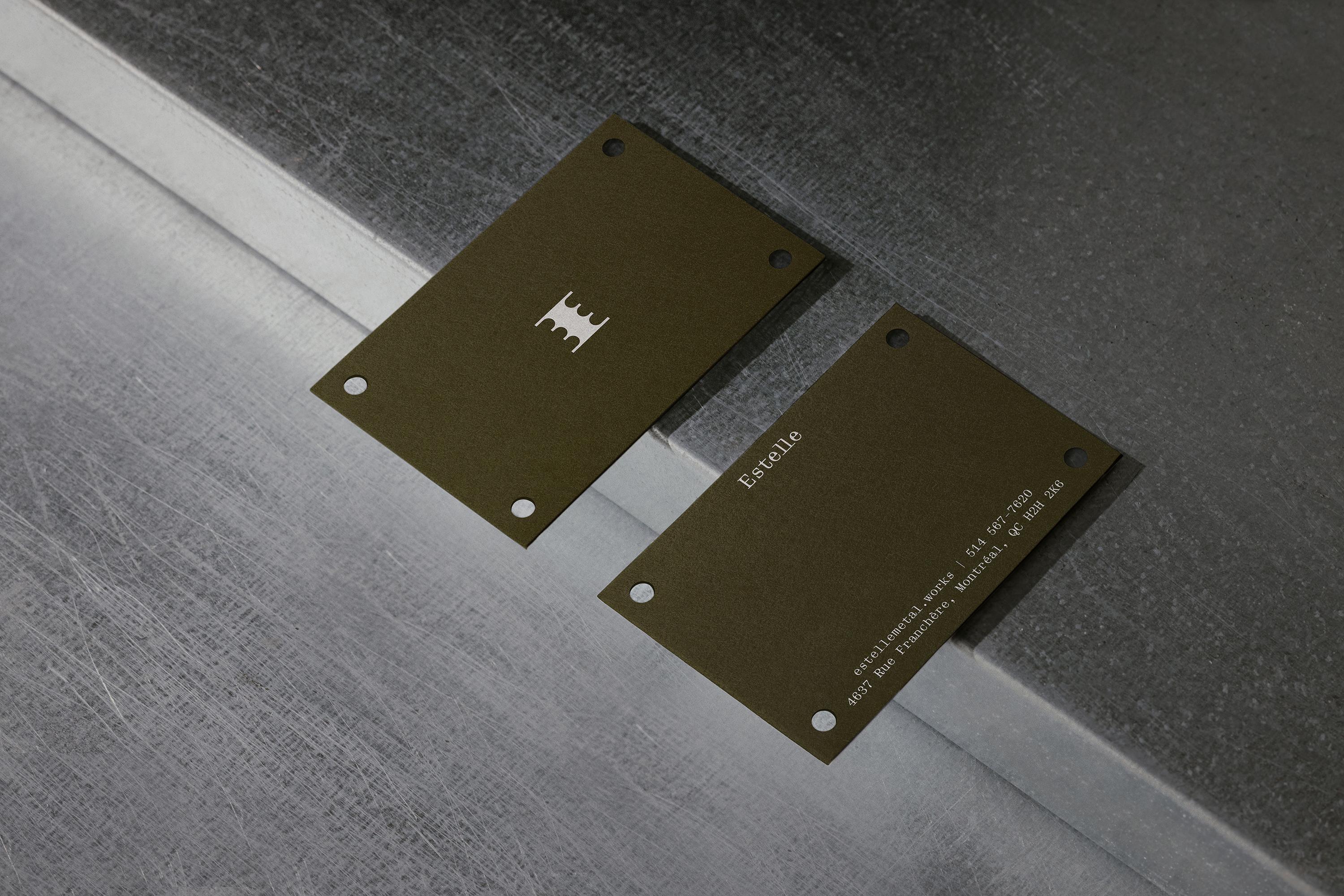 Estelle Metalworks is a boutique metal shop based in Montreal, Quebec, specializing in bespoke furniture and décor crafted from a variety of metals.The studio’s name honours the founder’s grandmother—an inspiring woman as tough as nails and as resilient as metal. The brand’s symbol designed by Hayley Lim draws inspiration from the humble screw: one of the smallest yet most essential tools in building, representing the “small but mighty” ethos. This screw motif is subtly woven throughout the brand.
