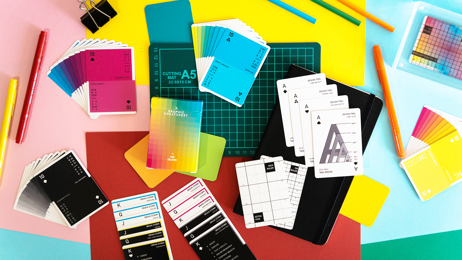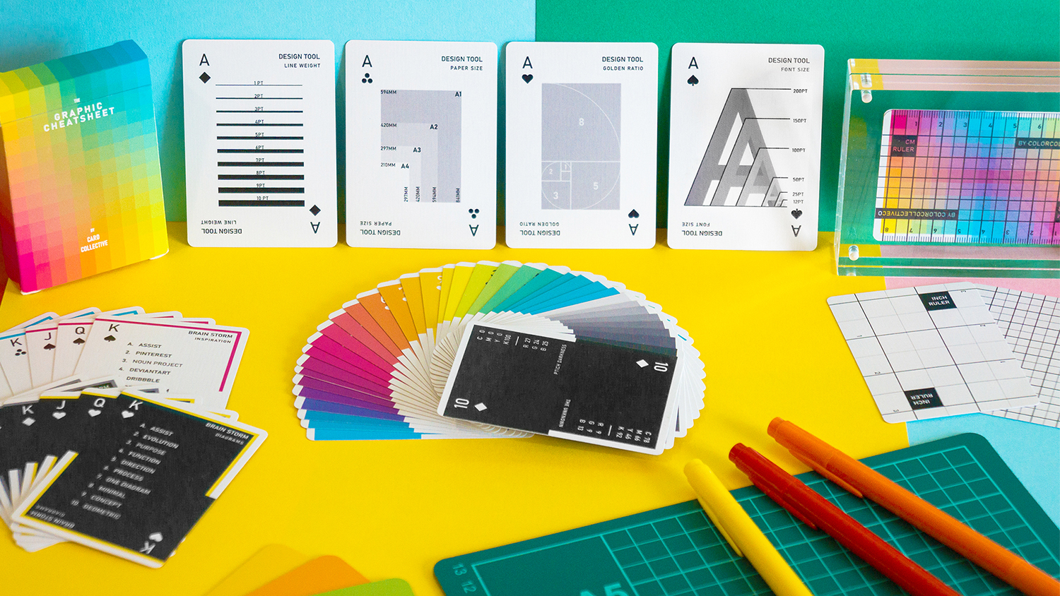 This is a playful themed deck of playing cards integrated with useful design tools for productivity and also functions as a fun deck of playing cards for leisure. This "Graphic Cheatsheet" helps creatives to come up with unique and refreshing strategies to help solve daily design challenges, this is achieved by integrating color coded cards, brainstorm cards, common design standards cards & measurement cards. Having this pocket sized tool makes it convenient to take with you while working at the coffee shop helping you smash through the day! Oh, not to mention this deck also works great for cardistry because all the colors are bound to catch attention and are also top quality cards as they will be manufactured by the world's leading playing card manufacturer, Cartamundi. The campaign was quickly funded in one day and going strong, the team @colocollectiveco are constantly updating their instagram account with engaging content and keeping continuous communication with the community!