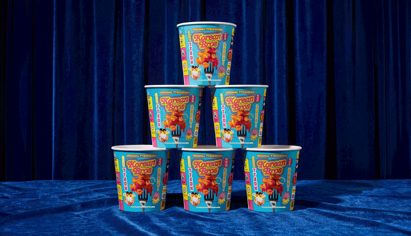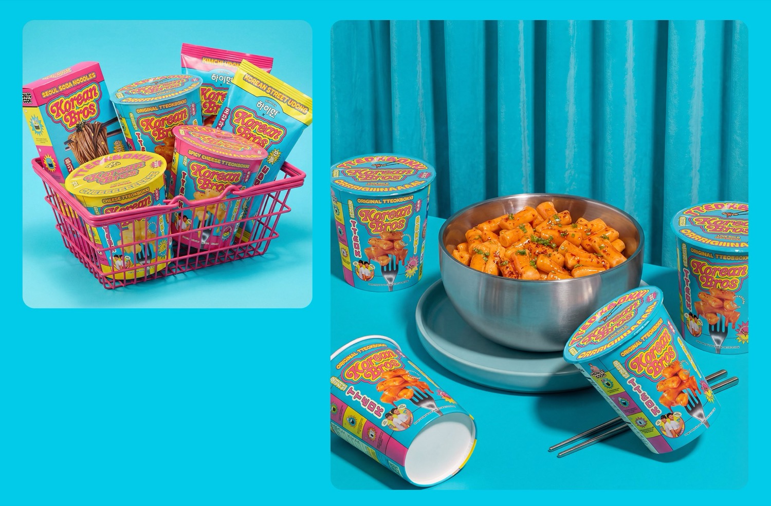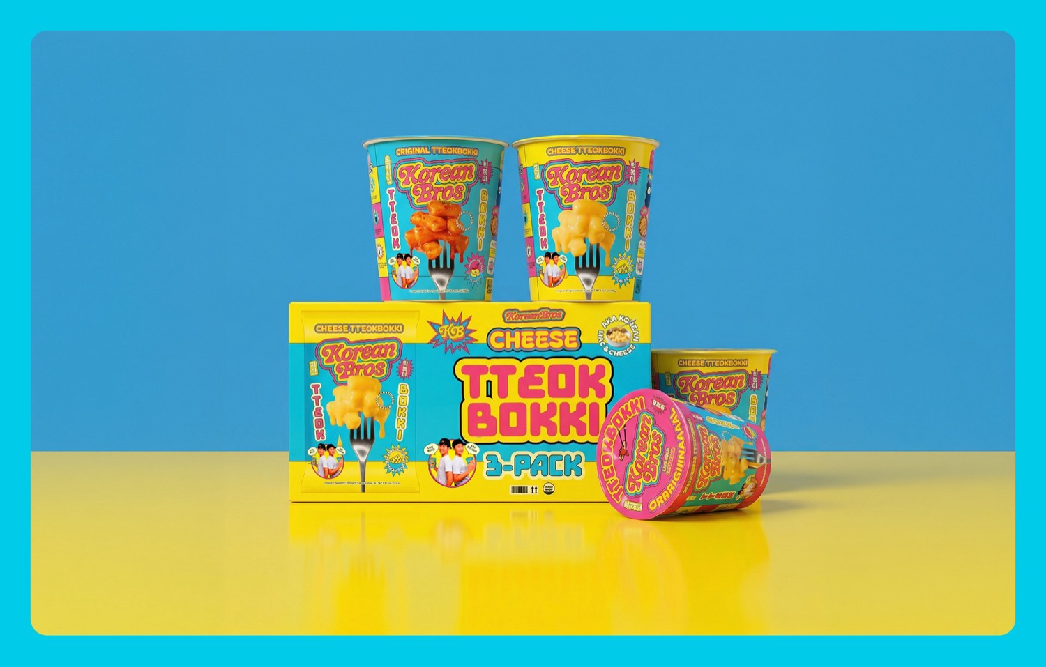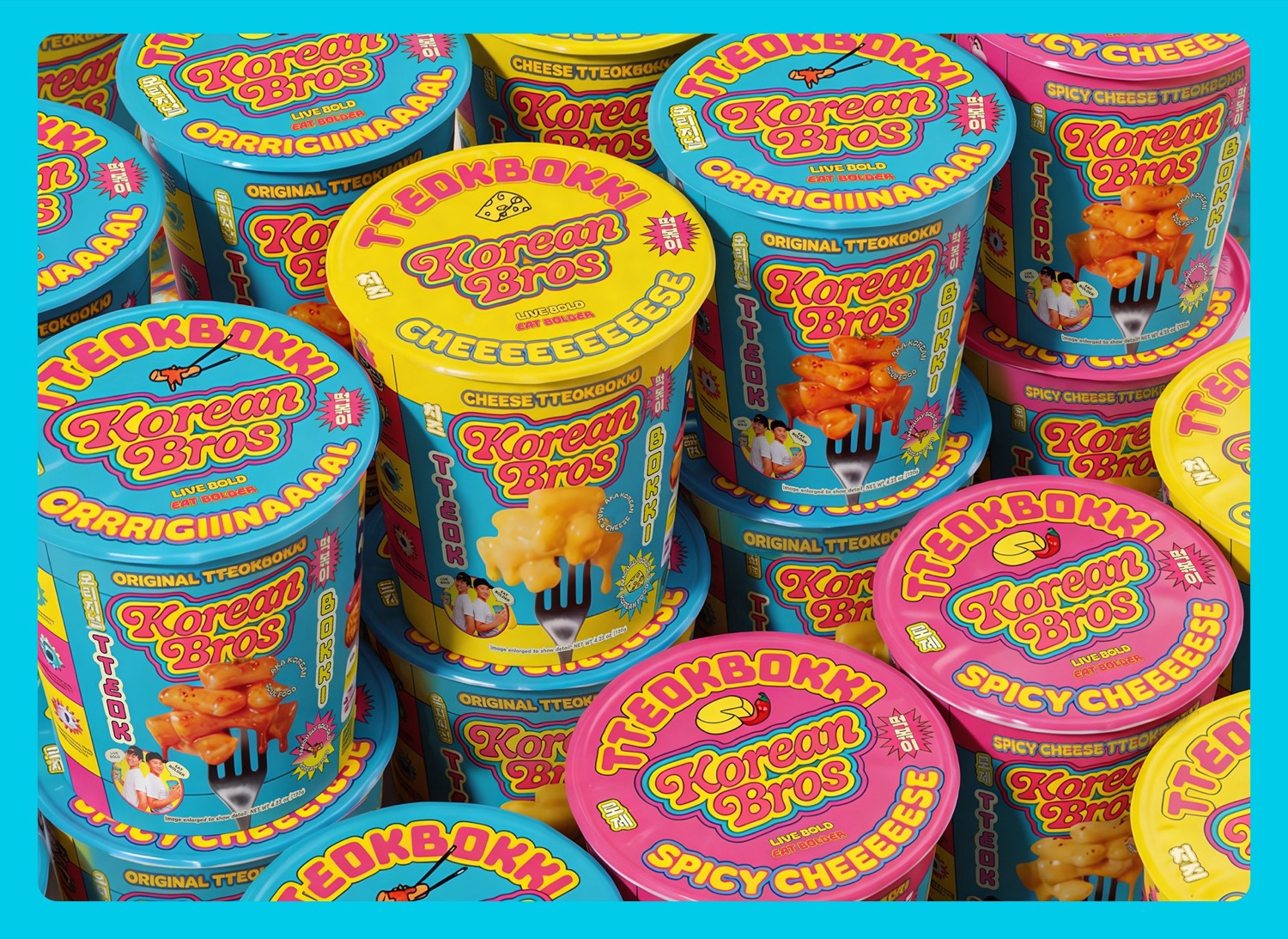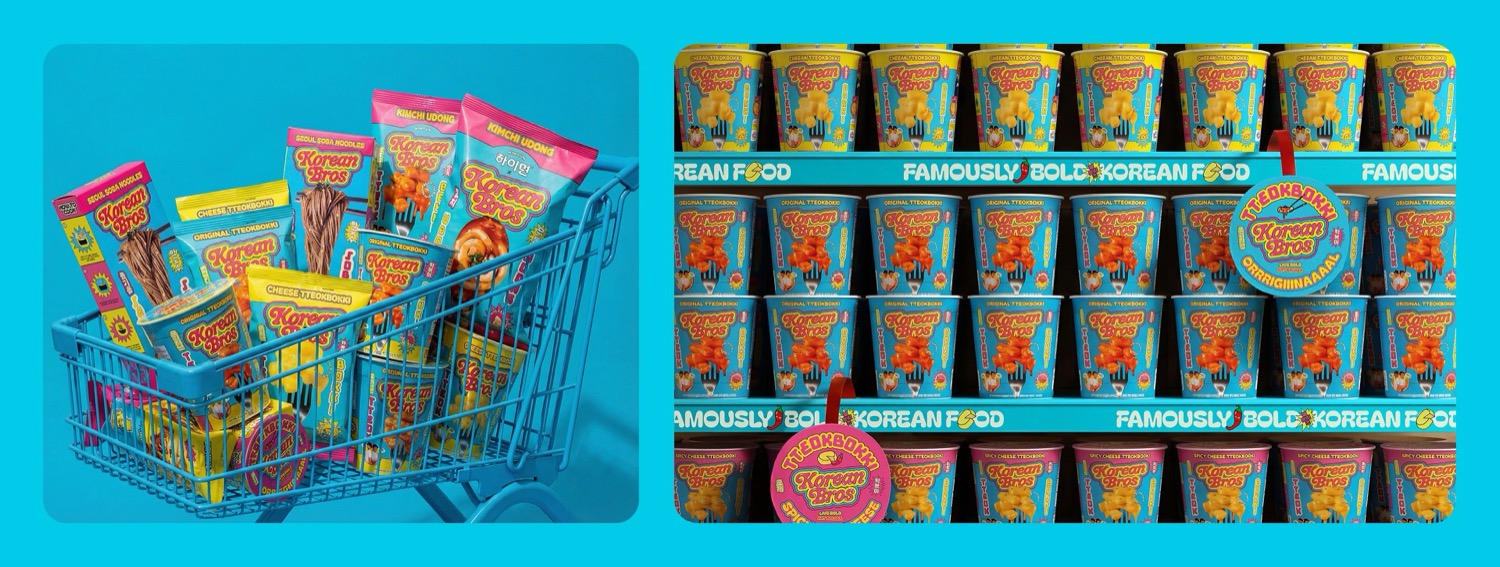 The messaging dials up easy comparisons to American foods, calling the tteokbokki, for example, Korean Mac and Cheese, along with comedic flavor profiles, and a Bro Origin story on every pack. While Korean language translations amp up cultural credibility. The result is a packaging system where every element — from macro-level shelf presence to micro-level label detail — reinforces the brand with unwavering consistency and creates moments of fun and discovery. The identity doesn't just live on the packaging. It is the packaging.