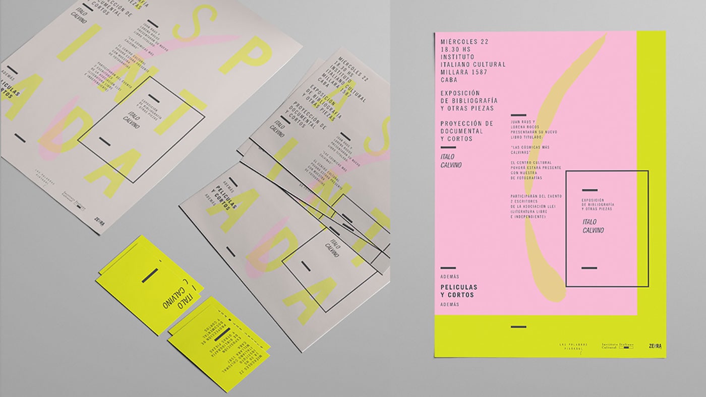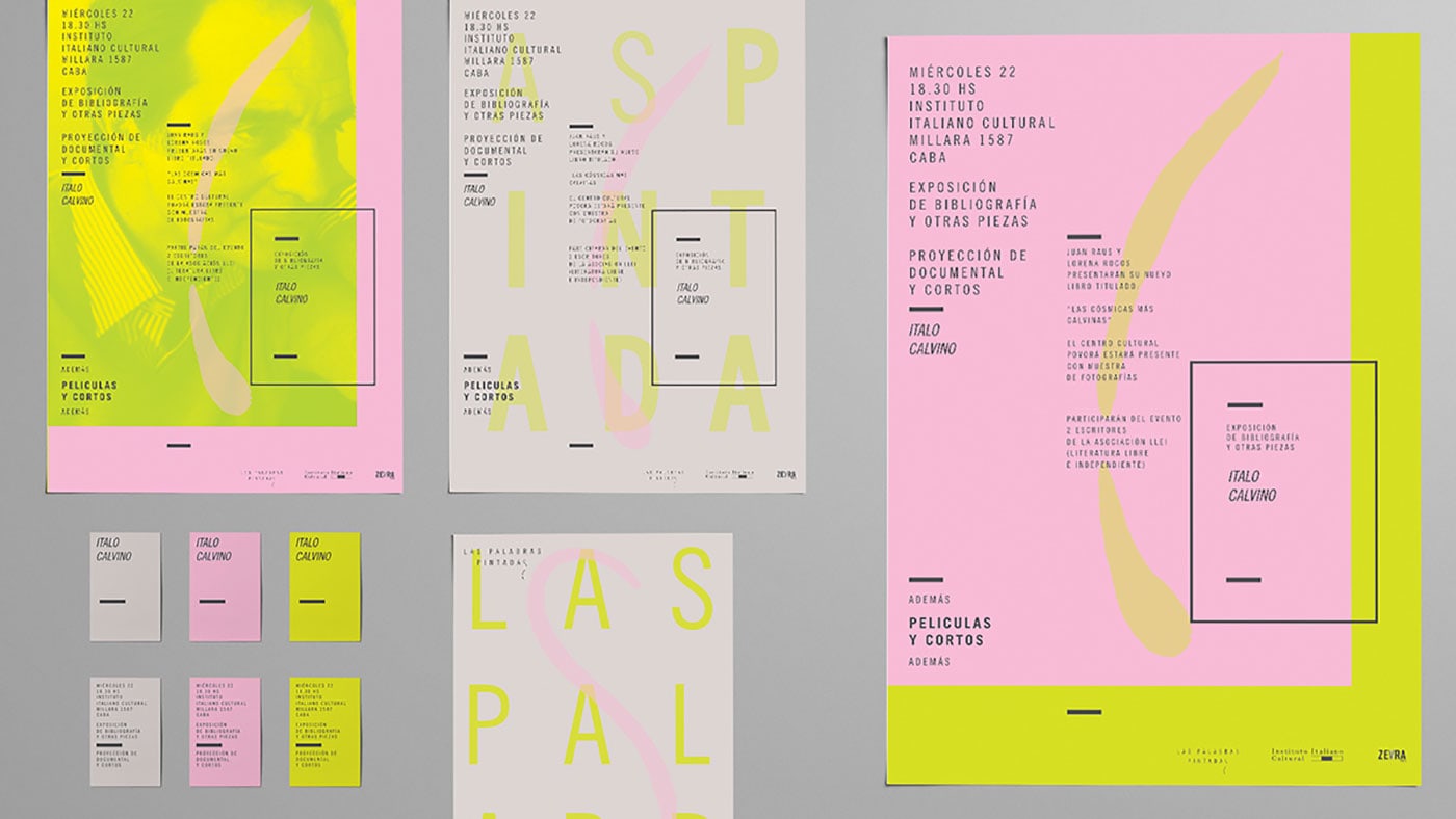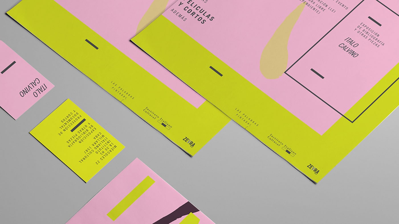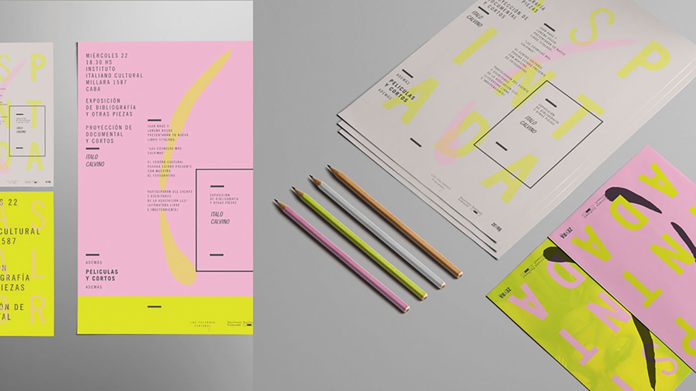 Lucía Izco designed “Las Palabras Pintadas” - an academic project done for a design subject. It consists in the visual identity of a literature work of Italo Calvino in an independent cultural centre in the city of Buenos Aires. The mixture o fcolours generates a surreal and confusing feeling typical of the author´s fantasy.