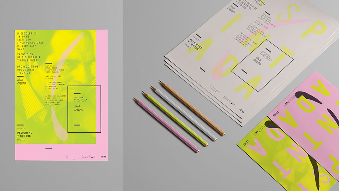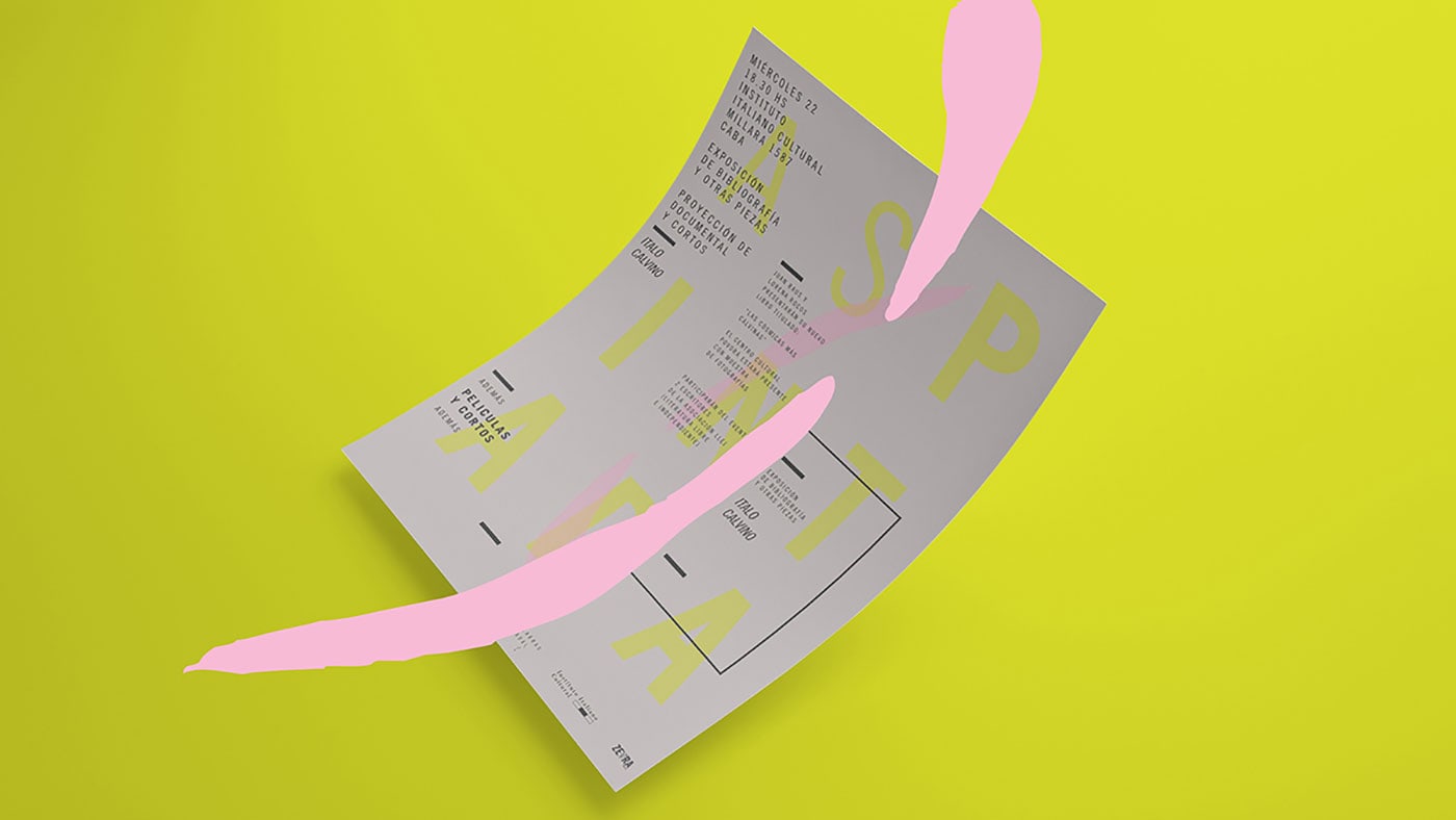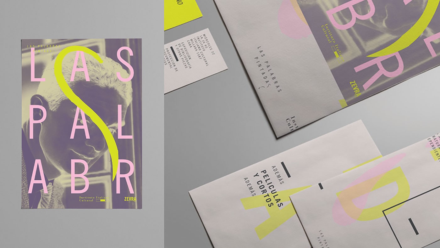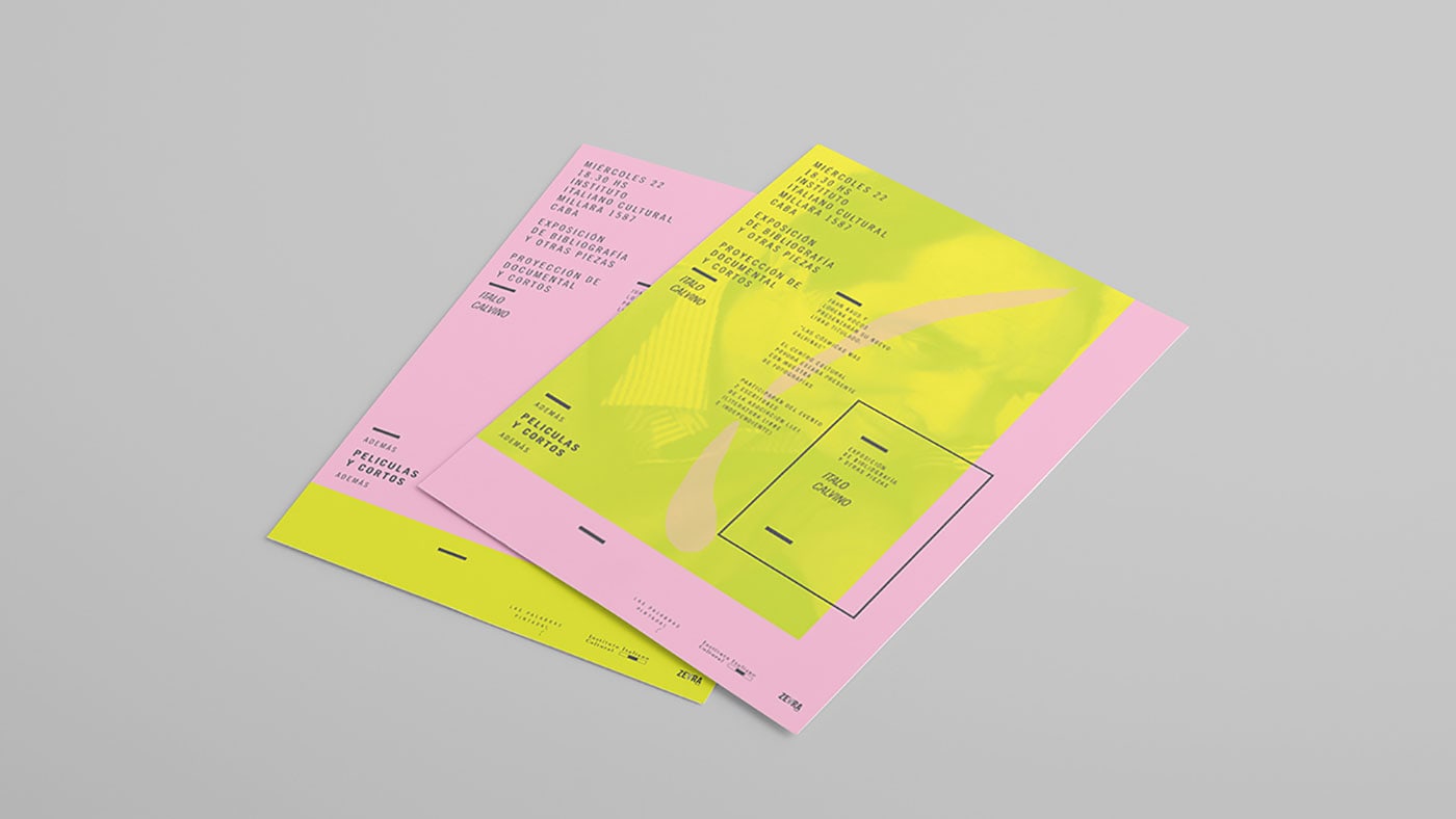 Lucía Izco designed “Las Palabras Pintadas” - an academic project done for a design subject. It consists in the visual identity of a literature work of Italo Calvino in an independent cultural centre in the city of Buenos Aires. The mixture o fcolours generates a surreal and confusing feeling typical of the author´s fantasy.
