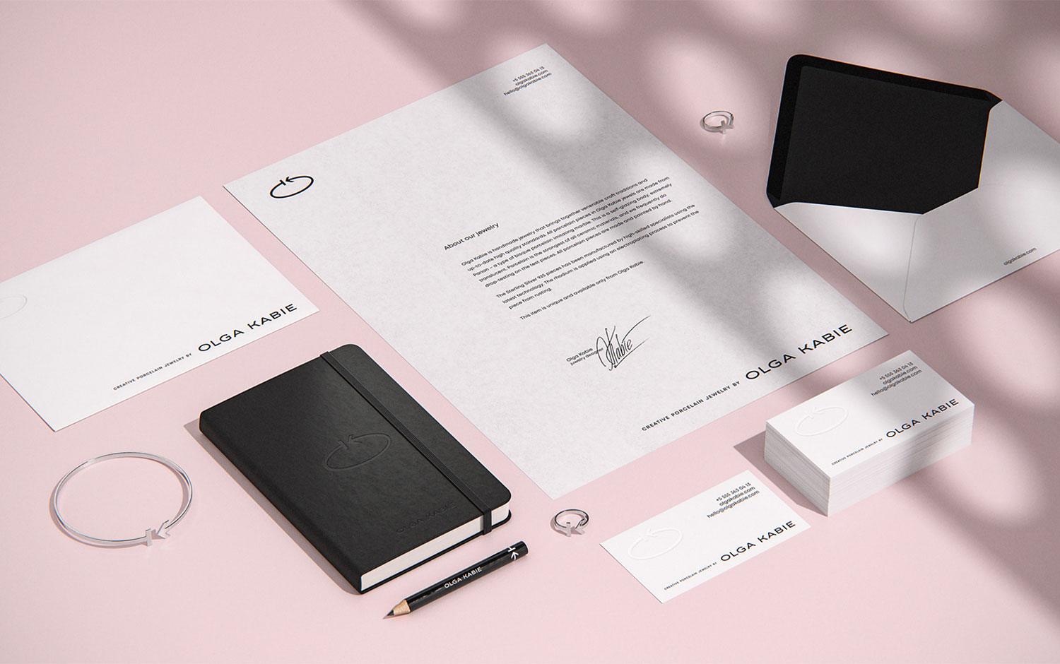 Today's design post features a very delicate and elegant project. Olga Kabie is a gifted Russian designer who creates beautiful porcelain jewelry. And Vladimir Kibets is the creative mind behind Olga's visual identity for her creations. He is a freelance graphic designer specializing in logotype and brand identity and has developed the logo, corporate identity, and packaging.