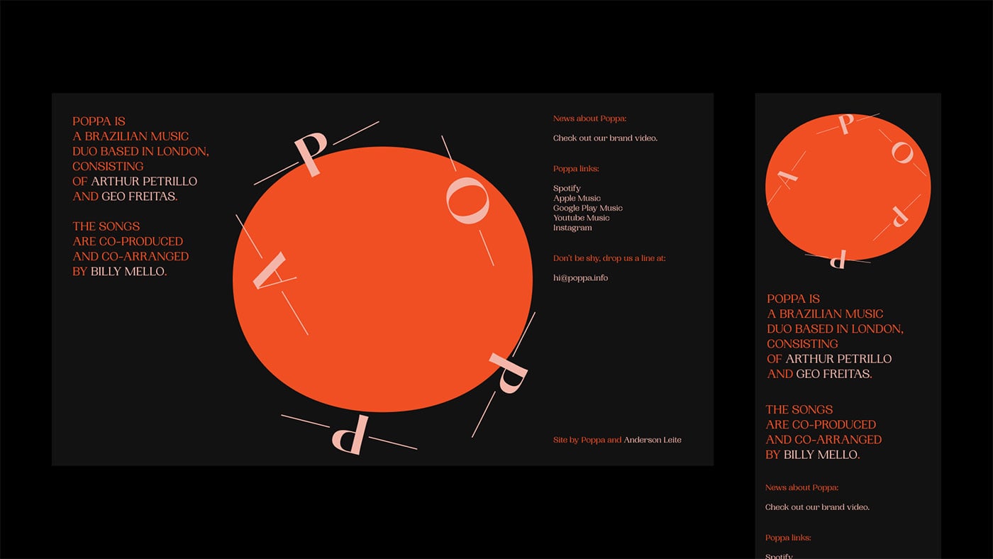 Posters and music communications have always been great allies. Designers have explored many ways of representing it, using the branding’s essential graphic elements — such as the “O,” typography, scores, and lyrics. They also found ways of incorporating photography. The photos used on Poppa’s branding comes from the fantastic work of their friend Anderson Leite.