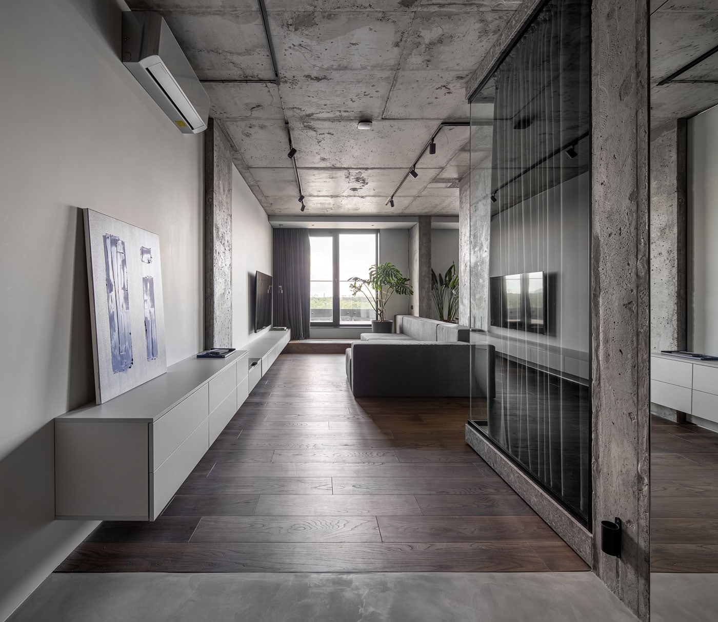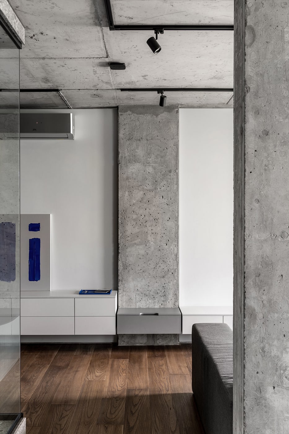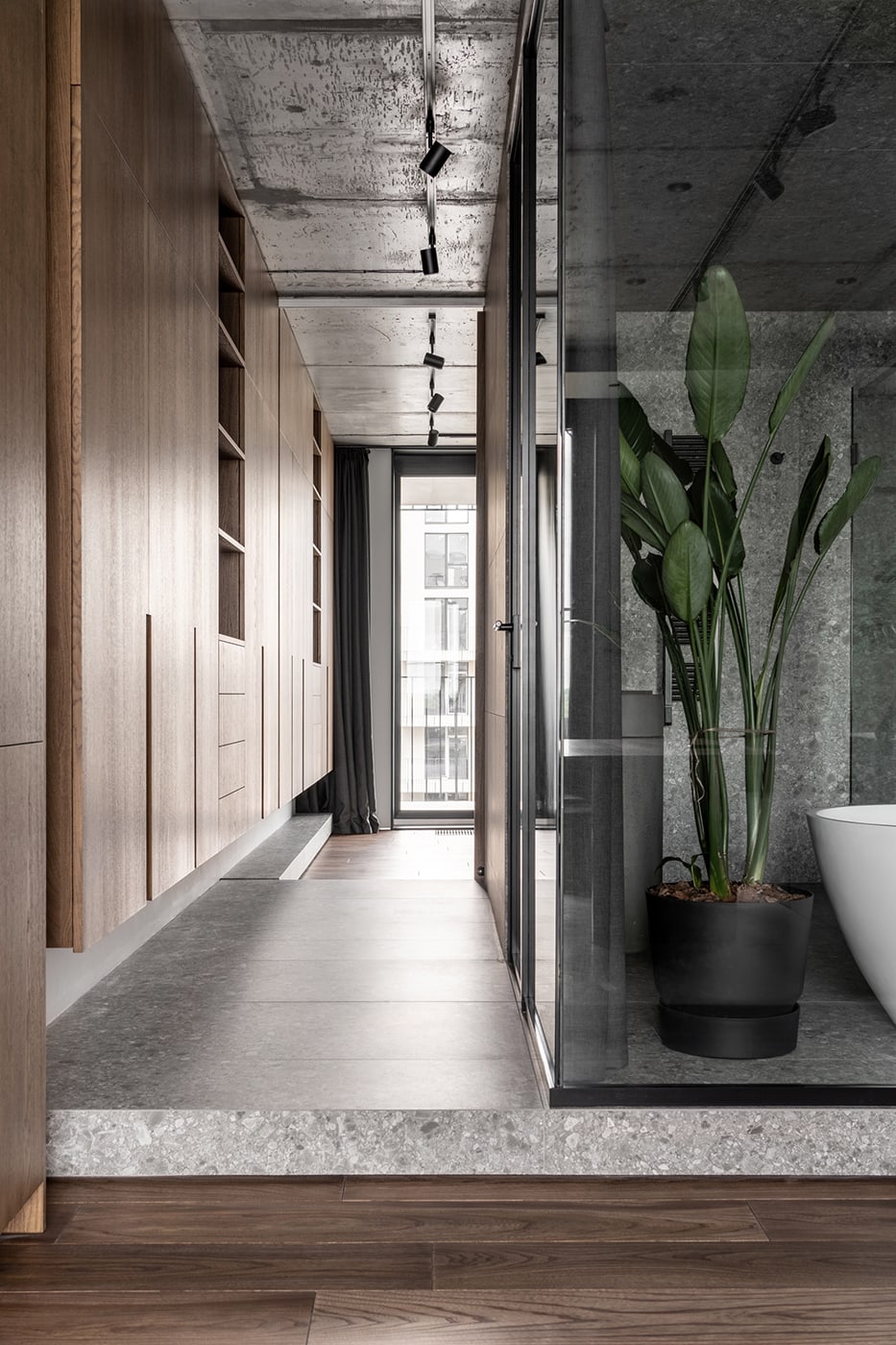 FILD Office designed Rybalsky Appartment. The goal was to create spacious, uncluttered interior reflecting the owner’s spirit in a unique, timeless appearance. The well-combined materials, patterns, and textures create an attractive, mature perception of the dwelling. The general mood of the apartment reflects a modern, sophisticated, tranquil in color, quality space.