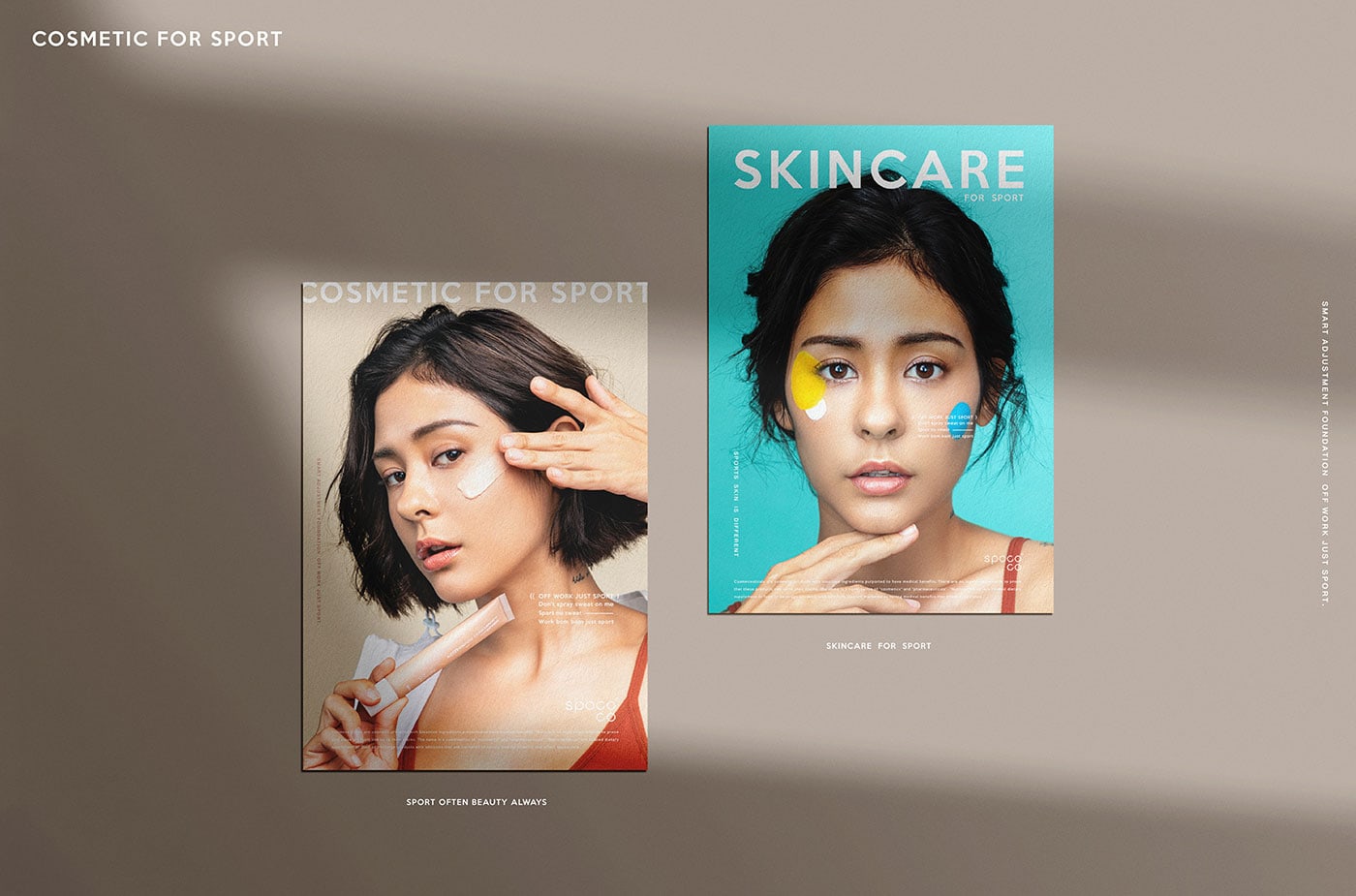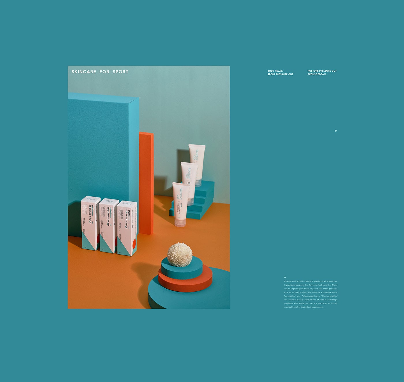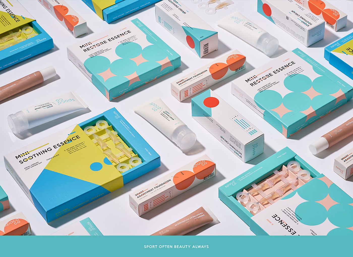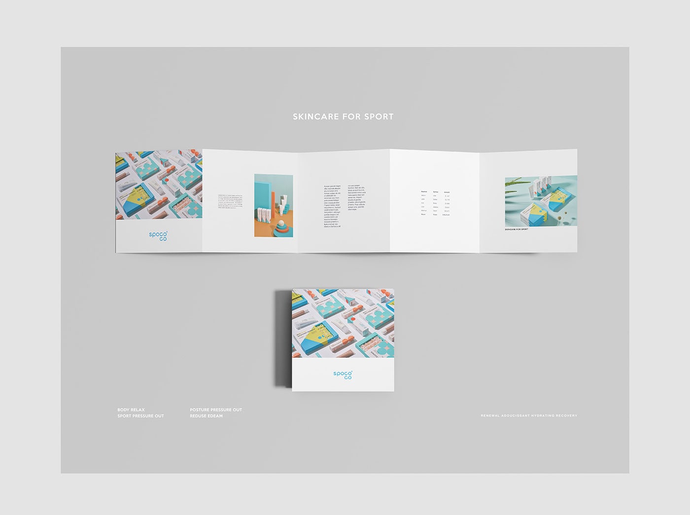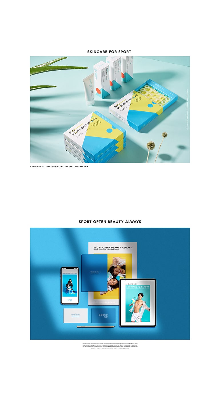 Maybe Chang designed SPCOCO cosmetics - a cosmetics and beauty brand specialized in skincare for sports. For this project, the designer made use of eclectic colours and shapes to create a modern and fresh look and feel. The combination of geometrical elements with more nature related ones create the perfect combo for a brand which presents skincare products that also have bioactive ingredients with medical benefits.