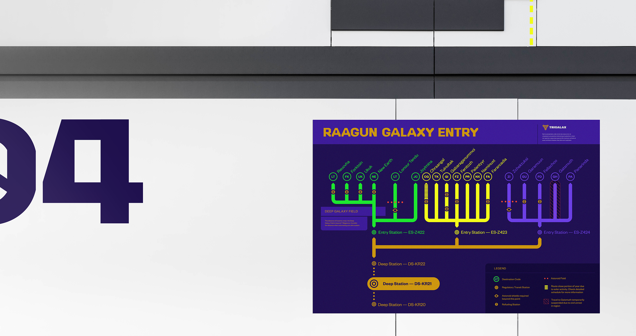 Tomi Lahdesmaki designed TRIGALAX - a personal project that he has been working on and off for over three years and centers around the idea of using his medium of graphic design, and branding specifically, to tell a fictional story. Throughout his career he has always struggled with the commercial and "real world" aspects of his profession, and the limitless creativity in storytelling other mediums such as movies and writing play with. So he wanted to push beyond the typical parameters of graphic design and explore creating an original world and story using his beloved medium. The result is a fictional (and a little tongue in cheek) case study for a corporation in the far distant future and a love letter to classic timeless branding.