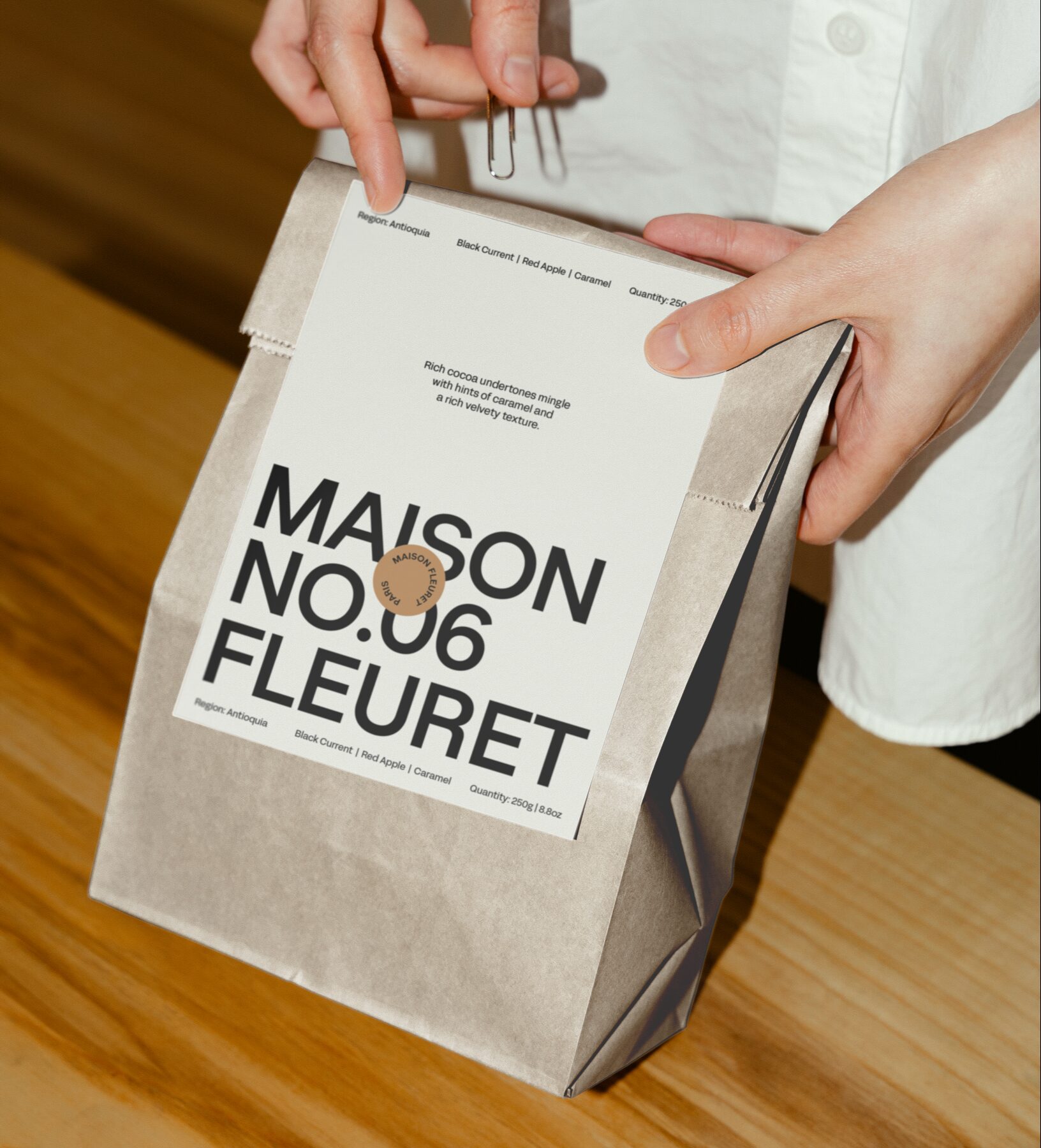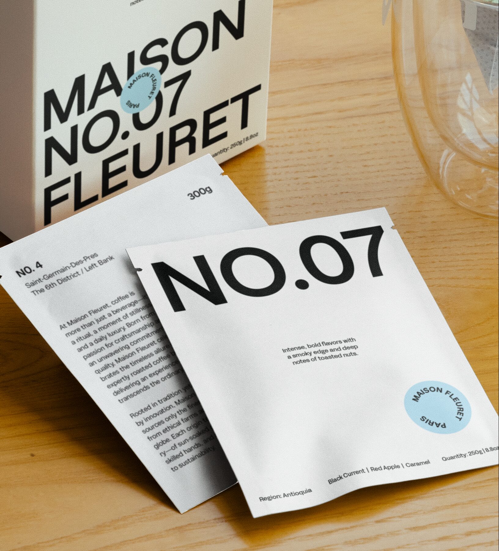 Paris-based Maison Fleuret is a refined brand spanning a coffee shop, baking school, estate, hotel, and a premium product line including wines and specialty coffees. Rooted in French tradition and sophistication, the identity by Carla Palette is intentionally timeless and understated, centered on a custom Sterling Sans logomark that adapts seamlessly across touchpoints. A supporting illustration system enriches each sub-category, while packaging uses a precise color and numeric code—borrowing clarity from luxury cosmetics—to distinguish blends and wines. The result is a cohesive brand world where every detail reflects Maison Fleuret’s commitment to authenticity, elegance, and an elevated customer experience.