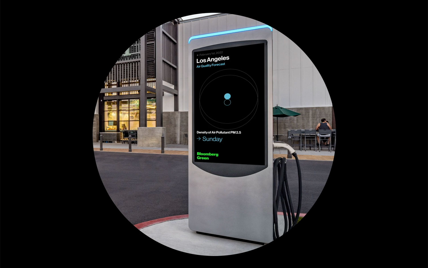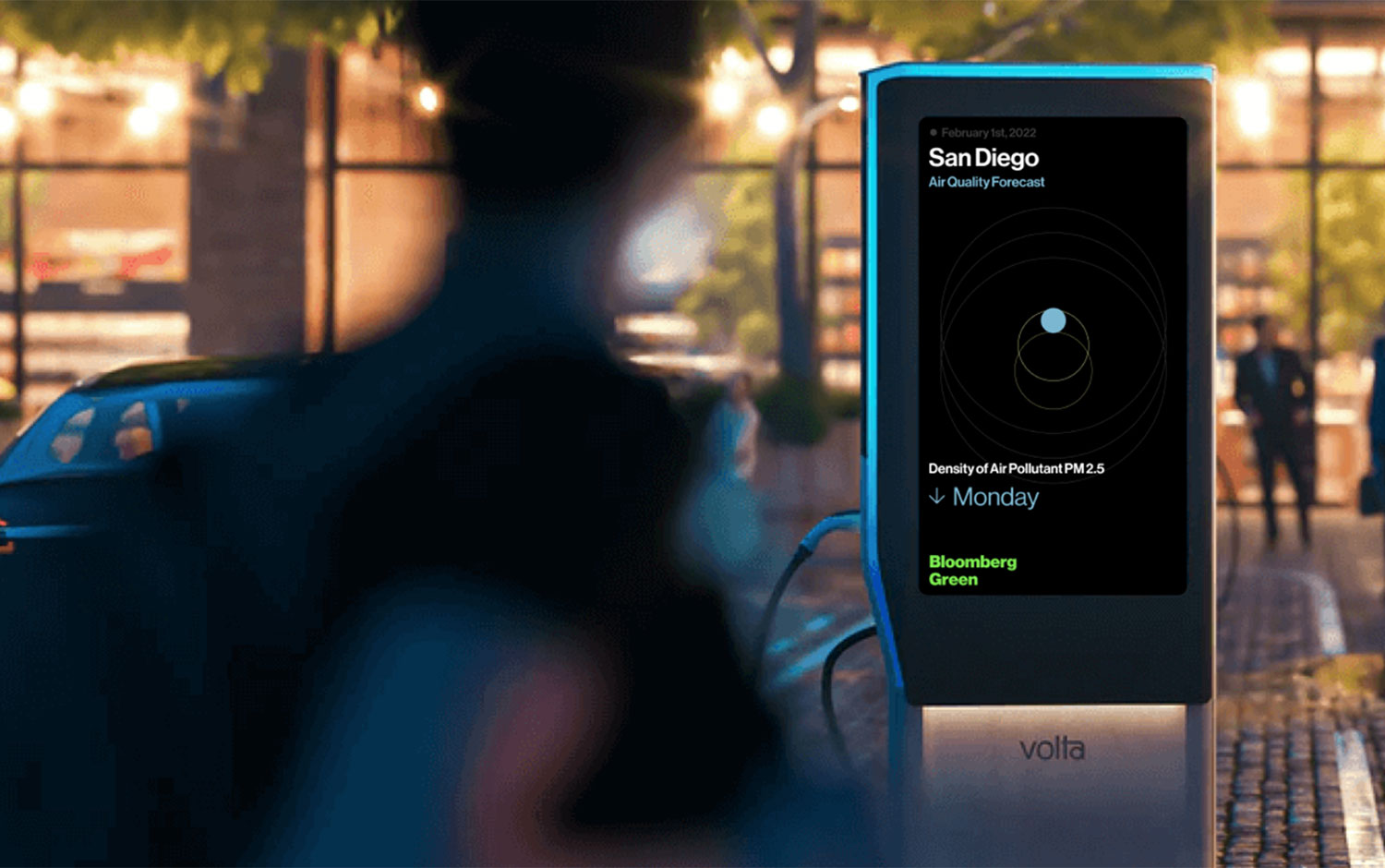 What's the Air Quality like in New York today? You can look that upon any of the Volta electric charging station billboards. Algo turns the Bloomberg Green data into an outdoor video experience available in the 12 major cities across the US.