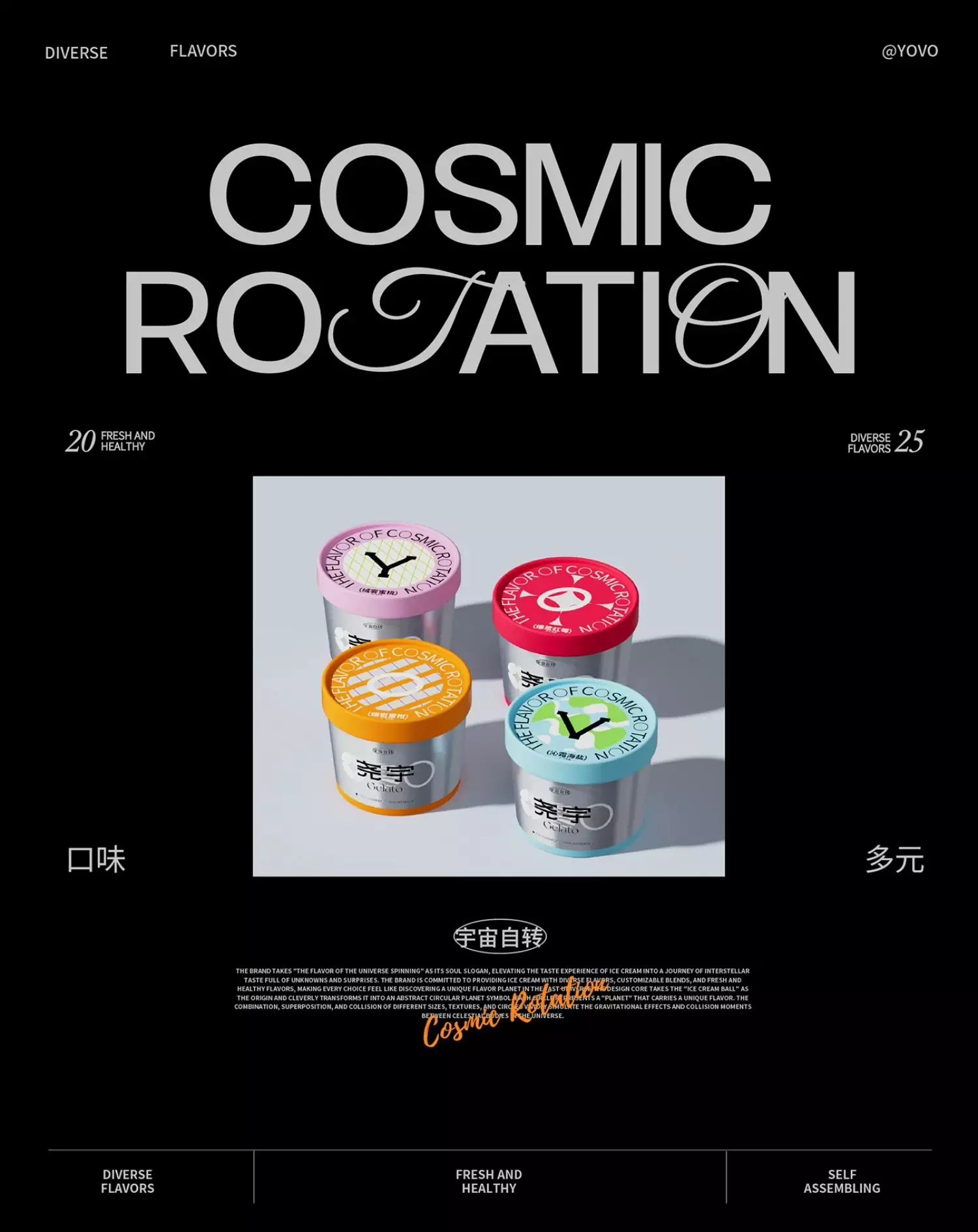 YOVO is a bold new take on gelato designed by Hellocean, bringing together rich flavor, cultural identity, and high-impact visual design. Originating from China, YOVO offers more than just a frozen treat — it presents a lifestyle-driven dessert experience shaped by aesthetics, attitude, and originality.